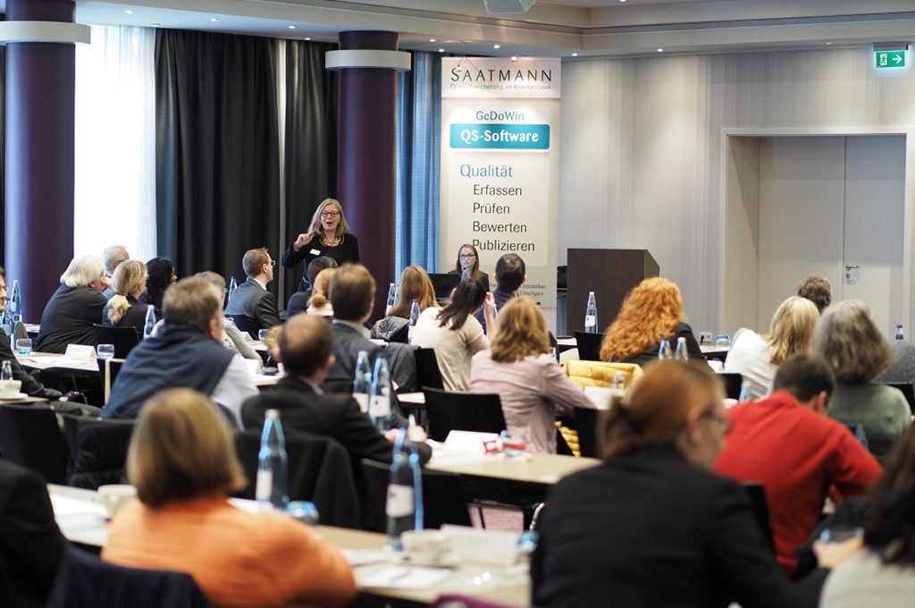 Im Mittelpunkt stand nicht nur der Endspurt für das laufende Verfahrensjahr und der Rückblick auf die PlanQI-Richtlinie, sondern insbesondere auch die für 2019 anstehenden Änderungen in Bezug auf die 100%-Dokumentationsrate, die DeQS-Richtlinie sowie neben Änderungen in ausgewählten Leistungsbereichen und Landesverfahren auch die Nutzung der Softwarelösungen der GeDoWin-Familie im Praxisalltag. Die Themen wurden neben den SAATMANN-Referenten Sabine Löffler und Georg Menhart gewinnbringend vervollständigt durch Frau Dr. Gabriella Rimkus (Universitätsklinikum Jena), Prof. Dr. Mansky, Frau Lea Nehm (Krankenhausgesellschaft Nordrhein-Westfalen e. V.), Frau Dr. Bettina Beinhauer (Agaplesion gAG/Vorstand DGfM), Herrn Dr. Ralf Hammerich (Charité – Universitätsmedizin Berlin) und Herrn Dr. Debacher (Asklepios Kliniken GmbH).